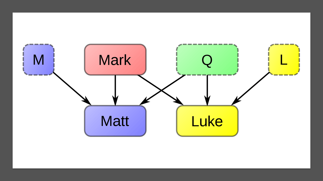 The scholarly consensus is that the Gospels of Matthew and Luke were written around the same time, probably 10 or 20 years after the Gospel of Mark, and between 10 and 30 years before the Gospel of John. The main reason that we think this has to do with source analysis. Universities, Seminaries and Divinity Schools devote entire courses on this subject, so the best I can offer you in the time we have today is an incredibly brief summary of one of several theories: the authors of Matthew and Luke both appear to quote from Mark, from which we can assume that Mark’s Gospel was already at least reasonably well known. There is also a lot of material that is unique to either Matthew or Luke, which is why we think they come from about the same time period: neither author seems aware of the other, and each author seems to have at least one major source that the other did not. Finally, there is a lot of material, including the Lord’s Prayer that is common to Matthew and Luke but is not present in Mark. Scholars have surmised that this came from another source that both Matthew and Luke know, but that, unfortunately, we have now lost. This source is called Q, based on the German word for source. Why German? Because it was mostly German scholars who first figured all this out. John is a whole other thing that we’ll have to put aside for today lest you all be forced to miss your lunch plans…and possibly your dinner plans as well.