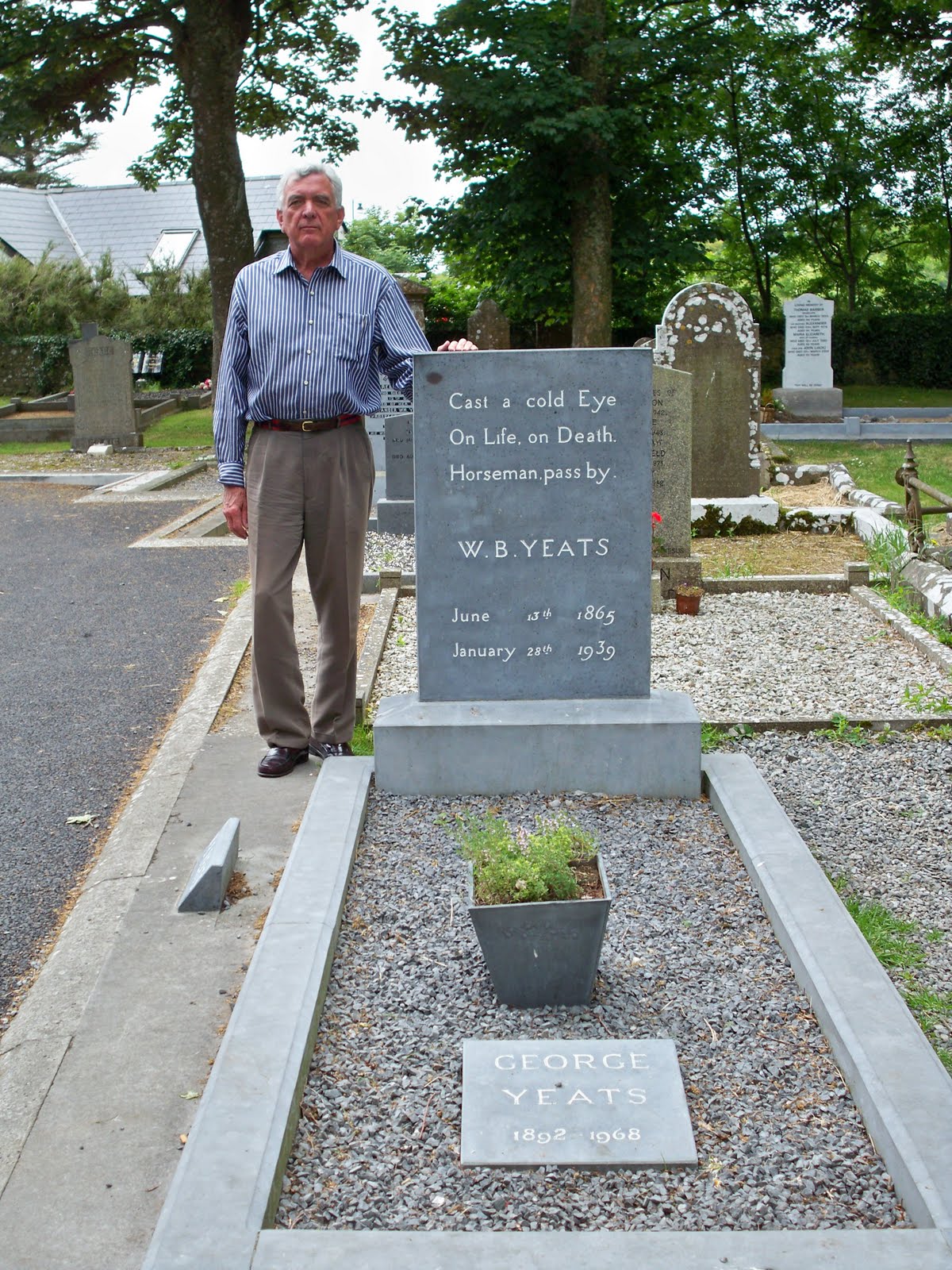 I liked staying in the bed and breakfasts, and especially talking with the women who ran them. I both saw and felt the famous Irish warmth and hospitality in every encounter we had with people from the Belfast area to the North Coast of Northern Ireland to Coleraine and Londonderry/Derry to the Irish Republic in every place we visited ending with Dublin. An Irish friendliness permeated every place we went. Of course, my favorite place we spent the night was the Hotel in Cork, because I do like elegance and luxury. Those rooms were incredibly nice. All of the full Irish Breakfasts were good–but the dining room in Cork was the most posh. Speaking of food, I felt very fortunate to have two lavish Irish dinners in real Irish homes, first with David and Heather, and next with your Dad’s colleague, Bob Welsh and his wife, Angela. I did like fish and chips, and eating in pubs, Very especially fun was watching the World Cup from the various pubs. I learned a lot from you and from the “football” fans in the pubs. I still think of it as soccer. I am glad we stopped and found the grave of William Butler Yeats, especially for your Dad. I am glad I got to see it–Yeats has always been a favorite of mine–but I am even more glad that your Dad did. I loved the park by Christ’s Church in Dublin where we saw the plaques on the wall honoring specific Irish writers. I was happy to see how many great Irish writers I know well from their work. The picture of me with your pint in the Guinness (How do you spell that?) Storehouse in Dublin did not fool either of your sisters. Liza just laughed about it. She knew I couldn’t drink a whole pint of ale. I am glad I at least tasted yours.